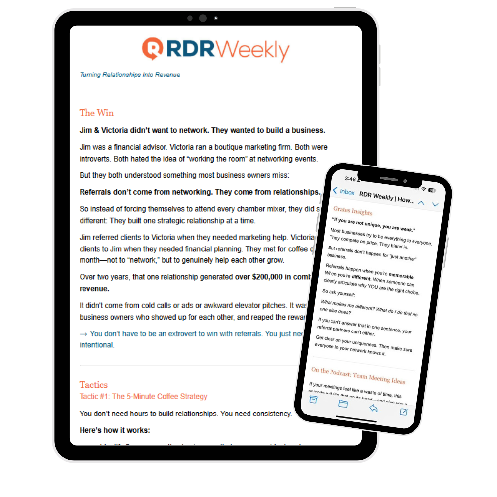 Referrals Done Right (RDR) is where real business owners learn how to build a community of people who know you, trust you, and actually send you business.